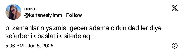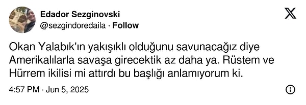 Bunun üzerine ‘Bir vakitlerin en güzel erkek oyuncusu olan Okan Yalabık’tan yeni bir kare geldi’ notuyla paylaşılan bu pozun akabinde X kullancılarının reaksiyonları tartışmaları beraberinde getirdi.