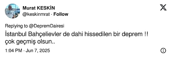 Jeofizik Yüksek Mühendisi Prof. Dr. Ahmet Ercan, zelzeleye dair bir paylaşım yaptı: