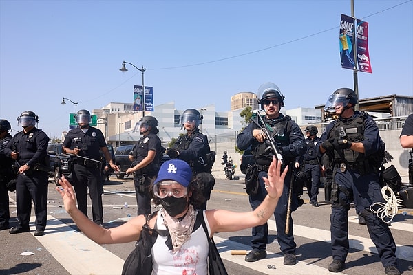 ABD Başkanı Donald Trump, Los Angeles’ta artan göçmen protestolarına karşı, California Valiliği’nin açık itirazına karşın federal güçleri görevlendirdi. ABD Kuzey Komutanlığı, federal mülk ve işçinin korunması gayesiyle 700 Deniz Piyadesi’ni Los Angeles’a sevk ederken, Savunma Bakanlığı 2 bin ek Ulusal Muhafız askerinin daha konuşlandırıldığını açıkladı. California eyaleti, konuşlandırmayı anayasaya karşıt bularak federal hükümete dava açtı. Ülke çapında protestolarda yapılan gözaltılara reaksiyonlar büyüyor.