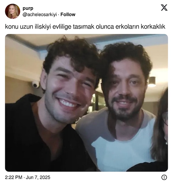 Bir kullanıcının ‘Konu uzun alakayı evliliğe taşımak olunca erkekler’ notuyla Murat Boz ve Aytaç Şaşmaz’ın yan yana pozlarını paylaşması X ahalisinin de hususa dahil olarak takviye vermesine neden oldu.