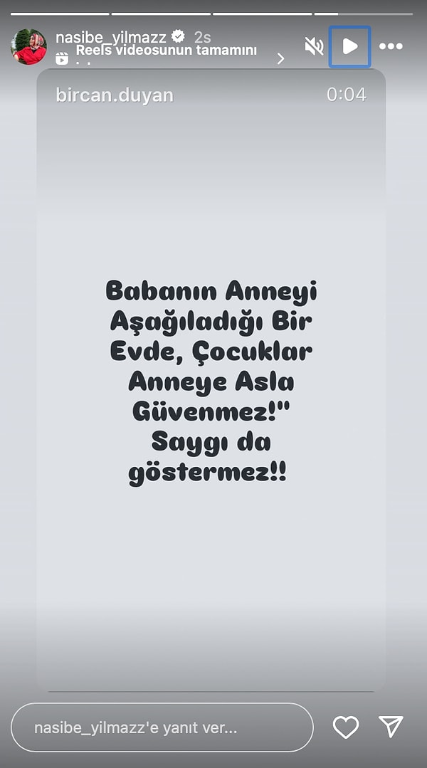 Emire Cansu’nun kayınvalidesini engellediği ve ikilinin birbirini takip etmediği görülürken, Nasibe Yılmaz’dan yeniden bol göndermeli bir paylaşım geldi.’Babanın anneyi aşağıladığı bir konutta, çocuklar anneye asla güvenmez! Hürmet da göstermez!’ tabirlerinin yer aldığı bir paylaşımda bulunan Nasibe Yılmaz kaynana gelin savaşının başladığını resmen duyurdu…