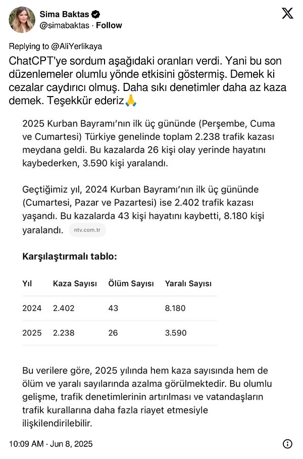 Kurban Bayramının Birinci Üç Günündeki Kaza Bilançosunu Açıklayan Ali Yerlikaya’ya Radar Reaksiyonları