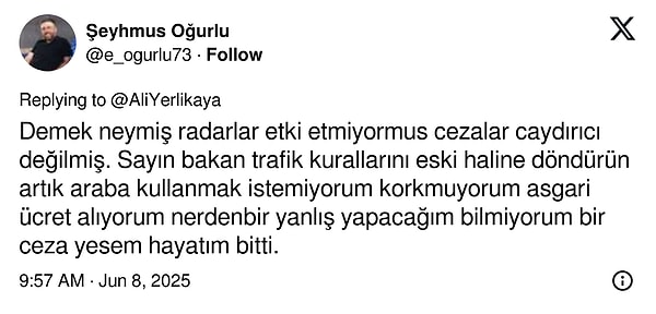 Yerlikaya’nın bu paylaşımına yorum yağdı. Radar ceza uygulamalarını destekleyen de vardı reaksiyon gösteren de…