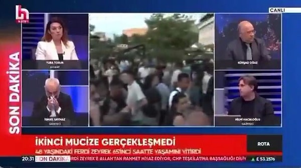 CHP Genel Başkanı Özgür Özel’in Manisa Büyükşehir Belediye Lideri Ferdi Zeyrek’in mevti sonrası yaptığı duygusal açıklama herkesi duygulandırdı. O duygusal anlardan biri de Halk TV canlı yayınında yaşandı. Özel’in açıklamasını dinleyen gazeteci İsmail Saymaz, Kürşad Oğuz, Hilmi Hacaloğlu ve Tuba Torun gözyaşlarına boğuldu.