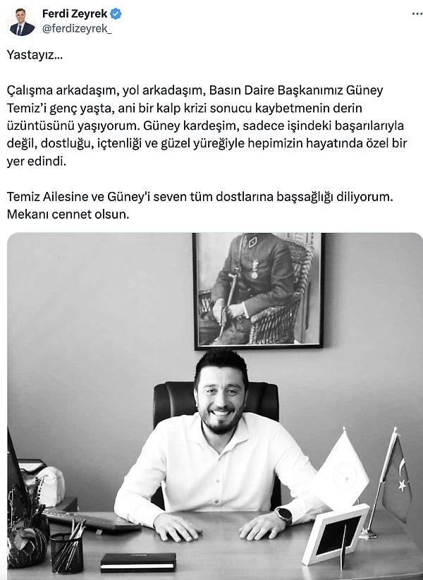 Temiz Ailesine ve Güney’i seven tüm dostlarına başsağlığı diliyorum. Yeri cennet olsun.’