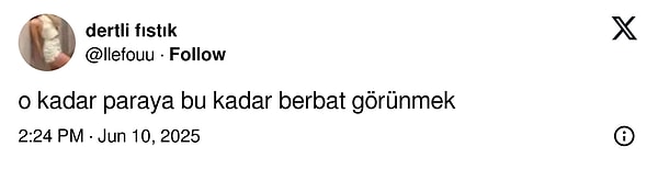 Bluzundan eteğine ve ayakkabılarına 447 bin TL pahasında olduğu öğrenilen bu kombinin fiyatı dudak uçuklatırken X kullanıcılarının ‘baba kombinine’ benzettiği ayrıntılar lisanlara büyük düştü.