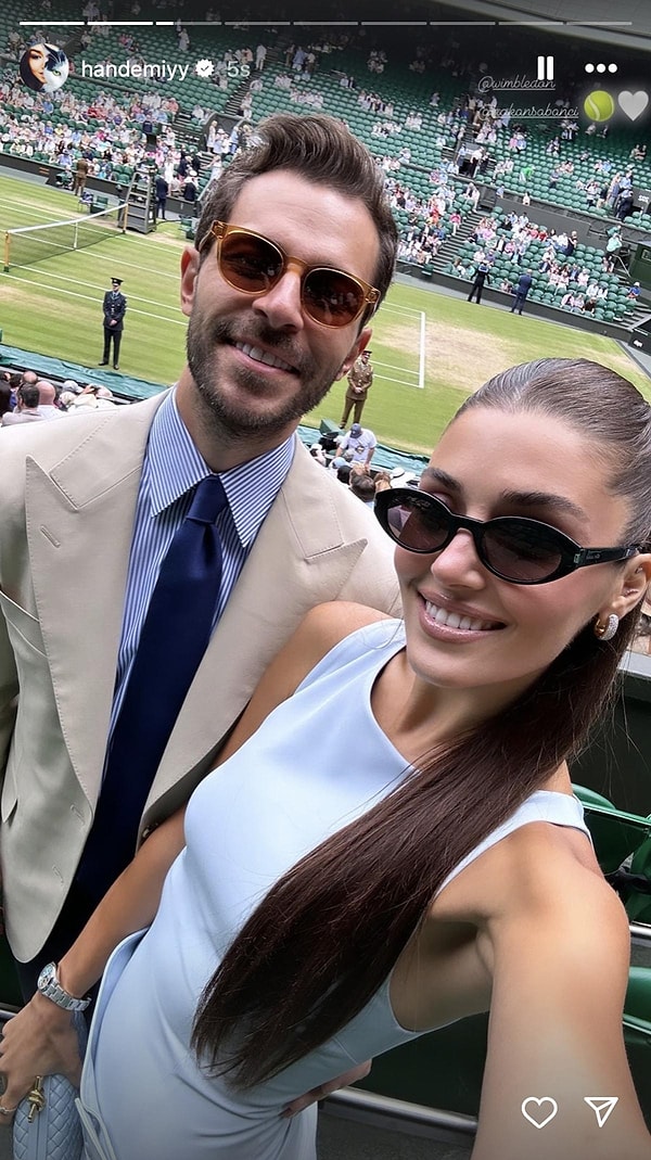 Hande Erçel ve Hakan Sabancı, bu kere de Paris’te düzenlenen Roland Garros finaline katıldı ve gündemin tam ortasına yerleşti. Cannes Sinema Festivali’ndeki savlı tarzıyla haftalardır konuşulan Hande Erçel, kort kenarında tercih ettiği dudak uçuklatan kombiniyle tekrar olay oldu.