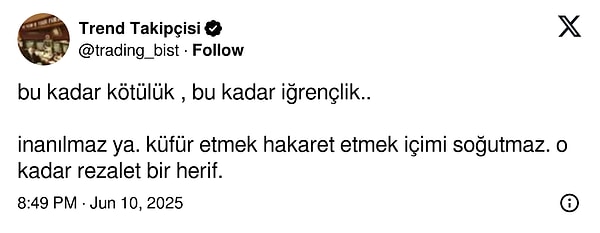 inanılmaz ya. küfür etmek hakaret etmek içimi soğutmaz. o kadar rezalet bir herif.