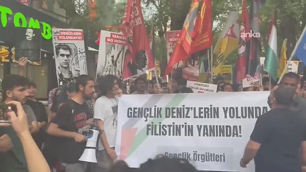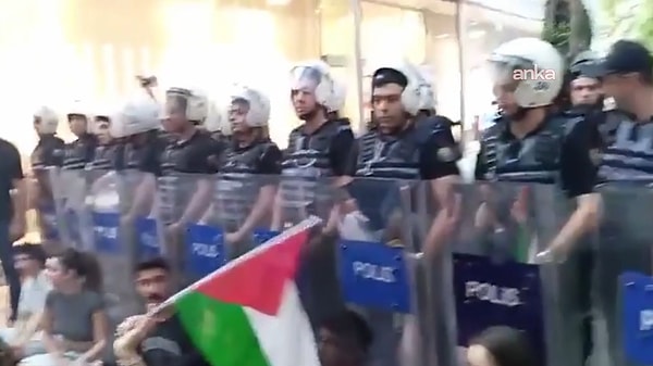 Ankara’da hareketli anlar yaşandı. İsrail’in, Filistinlilere yönelik hücumlarına dikkat çekmek isteyen “Filistin’de İşgale Son Platformu” ve birtakım sivil toplum örgütleri, Yüksel Caddesi’nde protesto hareketi düzenledi. Polis ile aksiyoncular karşı karşıya geldi. Kimi aksiyoncular gözaltına alındı.