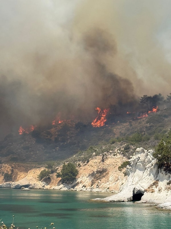 Rüzgarın tesiriyle büyüyen alevlere İzmir Orman Bölge Müdürlüğü, saat 11.52’de 2 uçak ve 6 helikopter ile havadan, 14 arazöz, 4 su ikmal ve 3 dozer ile karadan müdahale etmeye başladı. Grupların yangını denetim altına alma çalışmaları sürüyor.