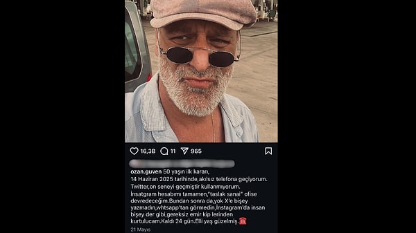 Sosyal medyaya veda eden Ozan İtimat, 21 Mayıs’ta bir paylaşım gerçekleştirmişti. İtimat, şu tabirleri kullanmıştı:
