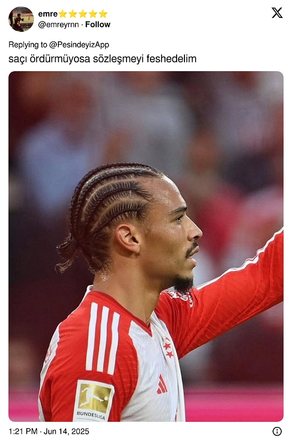 Yeni dönemde Galatasaray formasıyla izleyeceğimiz Alman yıldız futbolcu Leroy Sane’nin sıhhat denetiminde tabiple çekildiği fotoğraf toplumsal medyada futbol dünyasının gündemine oturdu. Sarı-kırmızılı taraftarlar, 29 yaşındaki oyuncunun saç tarzına dikkat çekti.