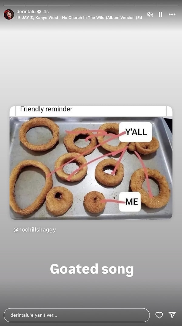 Bir tepsi soğan halkası paylaşan Derin Talu’nun iması toplumsal medya kullanıcılarına, ‘Bu neydi artık?’ dedirtirken, kiminin kahkahalarla gülmesine, kiminin de reaksiyon göstermesine sebep oldu.
