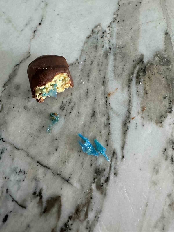 Çikolata denetim edildiğinde ise her şey ortaya çıktı. Çikolatanın içinde plastik kesimleri bulundu.