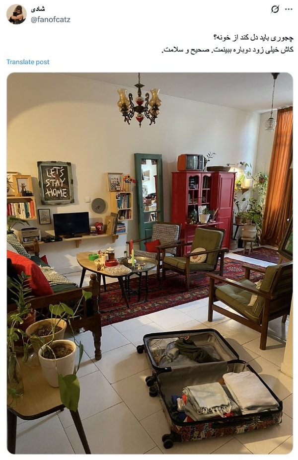 Evlerinden kaçmak zorunda kalan İranlılar, konutlarının ‘son fotoğraflarını’ içlerini dökerek paylaşıyor. BBC’nin derlediği bu paylaşımlardan, görmüş olduğunuz fotoğrafa bırakılan açıklama şu halde: ‘Evim hiç bu kadar hüzünlü olmamıştı. Geri dönüp dönemeyeceğimi bilmiyorum.’