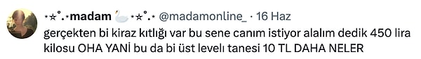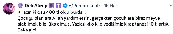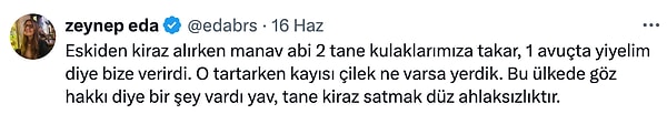 Bu yıl yaşanan zirai don ve şiddetle yağışlar nedeniyle bilhassa kiraz ağaçları büyük ziyanlar gördü. Üreticinin elinde her zamankinden daha az kiraz var, vatandaşlar ise marketlerde satılan kirazların yanına yüksek fiyatlarından ötürü yaklaşamıyor. Hatta kiraz satışında o denli bir duruma geldik ki; birtakım kentlerde kiraz tanesi 10 TL’ye satılmaya başladı. Şimdiye kadar erik satışında tane işi, karpuz satışında dilim seçeneğini görmüştük lakin kirazın tane ile satılmasıyla bir defa daha “bunu da gördük” dedik.