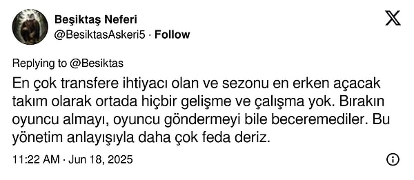 Beşiktaş taraftarı, UEFA Avrupa Ligi’ndeki kura çekimi sonrası lider ve idarelerine reaksiyonlu. Reaksiyonun sebebiyse şu ana kadar transferde resmi bir adım atılmaması. Siyaz-beyazlılar, Shaktar ihtimaline rağmen daha şimdiden ‘Konferans Ligi güzel olsun’ dedi.
