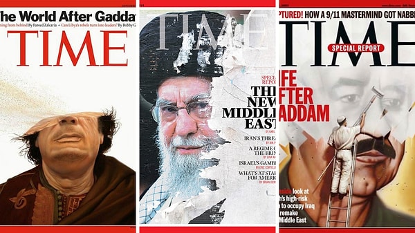 Saddam ve Kaddafi de misal tasvirlerle Time kapağında yer almıştı.