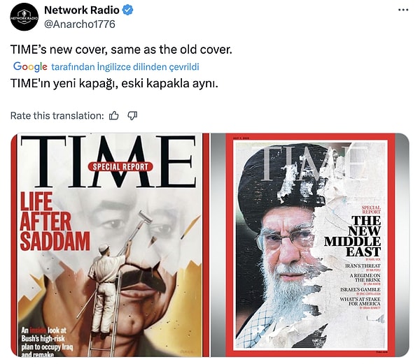 Time mecmuasının X hesabından paylaştığı kapağa reaksiyonlar arka arda geldi👇🏻
