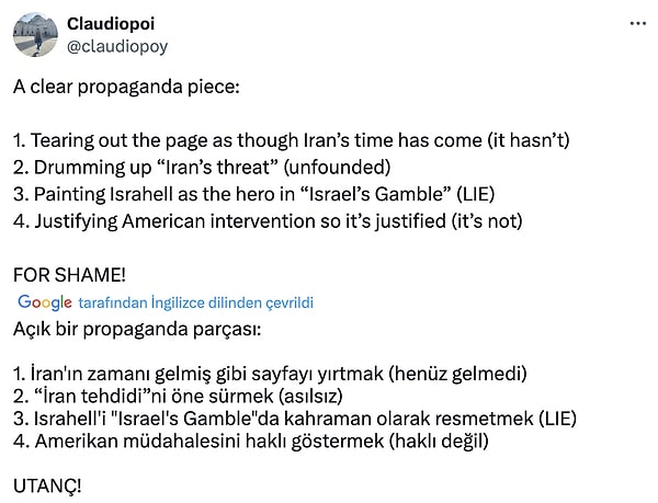 Derginin yeni sayısı 19 Haziran’da yayınlandı. İsrail-İran savaşı devam ederken Time, savaşa dair kıymetlendirme yazısına yer verdi. Kapakta ‘Yeni Orta Doğu’ başlığı kullanılırken savaş makalesinde ‘Gözlerimizin Önünde Yeni Bir Ortadoğu Ortaya Çıkıyor’ başlığı kullanıldı.