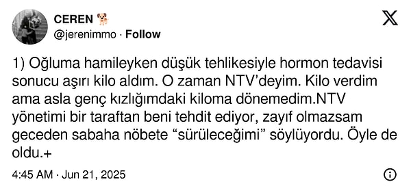 Eski haber spikeri Ceren Kerimoğlu NTV’de gördüğü kilo baskısını X hesabından anlattı👇🏻