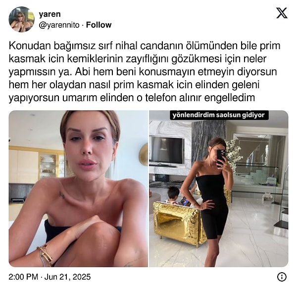 Nihal Candan’ın vefatının akabinde tıpkı periyot cezaevi sürecini yaşadığı toplumsal medya fenomeni Dilan Polat yaptığı paylaşımla dikkatleri üzerine çekti. Candan için yaptığı paylaşımda kendi fotoğrafını kullanan Polat’a toplumsal medyada reaksiyon yükseldi. Fakat Polat’ın da benzeri biçimde bir rahatsızlığı olabileceğini yazanlar da oldu.