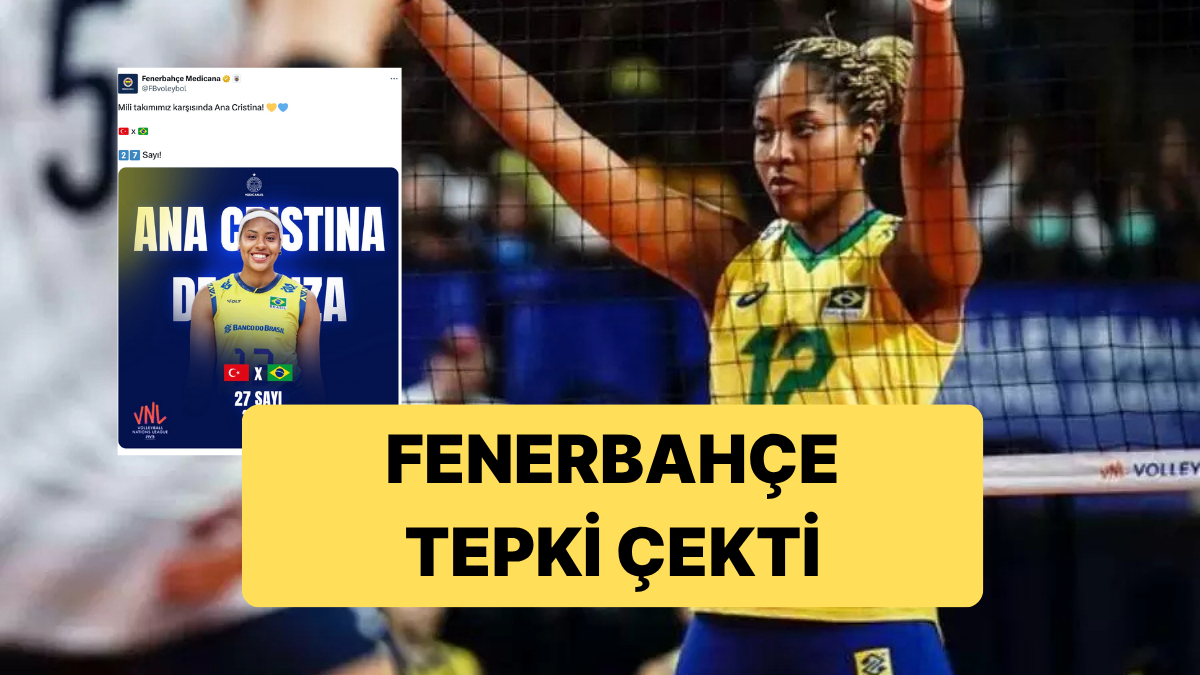 Fİlenin Sultanları, dün oynanan maçta Brezilya’ya 4 set sonunda 3-1 mağlup oldu. Brezilya ismine sahanın yıldızı ise Ana Cristina’ydı. Fenerbahçe forması giyen Brezilyalı atletin maçta attığı 27 sayı adeta kazananı belirlemişti. Fenerbahçe Voleybol hesabının maç sonu yaptığı Ana Cristina paylaşımı ise yenilgiyle tadı kaçan voleybol severleri biraz kızdırdı.